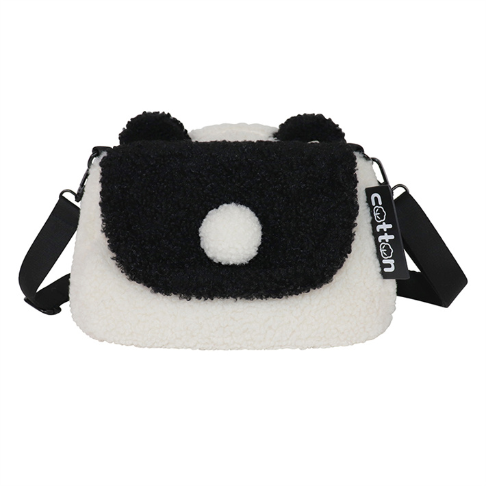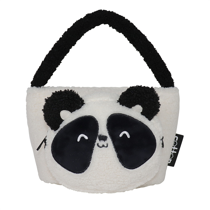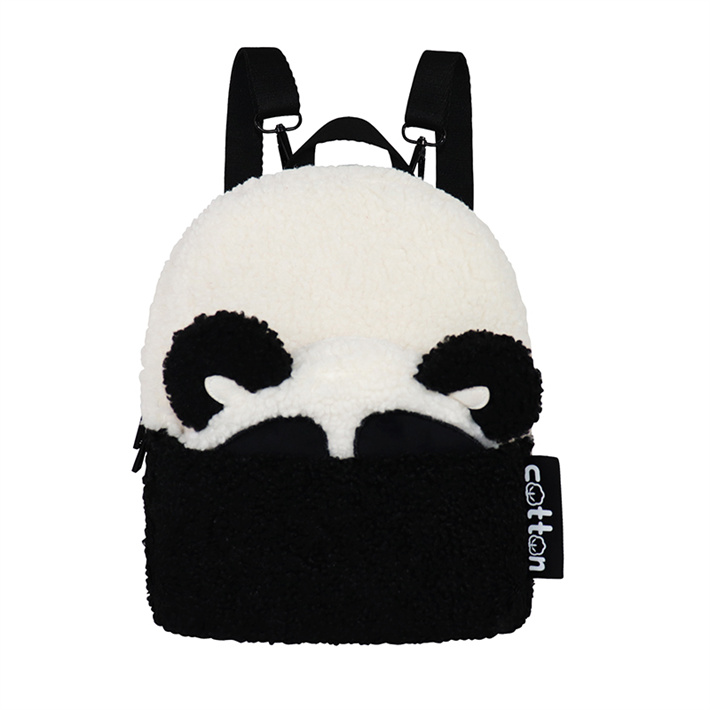 可愛熊貓卡通小巧旅行包毛茸茸小白毛絨雙肩包背包外出游玩小背包