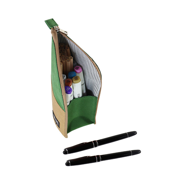 新款極簡主義站立筆筒多功能進口牛皮紙拼接桃皮絨拉鏈包定制
